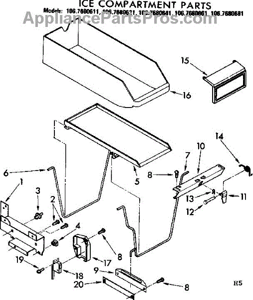 Parts for Kenmore 106.7680681 (1067680681, 106 7680681): Ice Compartment Parts