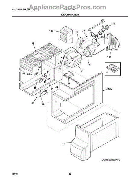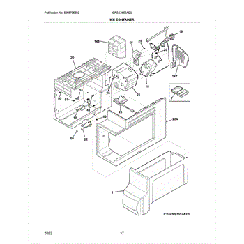 This replacement ice container assembly stores and delivers ice from the freezer to the dispenser. Replacing a cracked or jammed bin restores smooth cubed/crushed dispensing and dependable ice flow.
