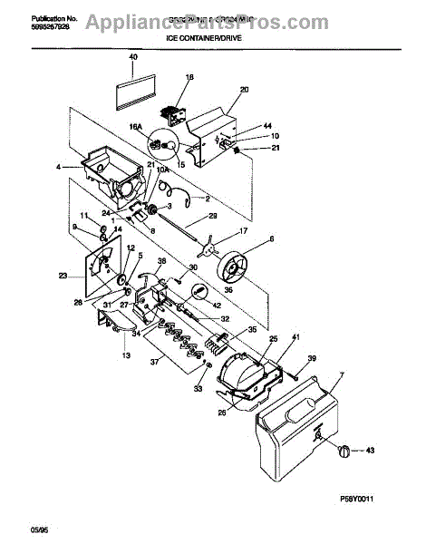 This auger motor powers the ice dispenser, rotating the ice-bin auger to feed cubes or crushed ice to the door chute. A failed motor stops dispensing, leaving ice in the bucket when the paddle or lever is pressed.