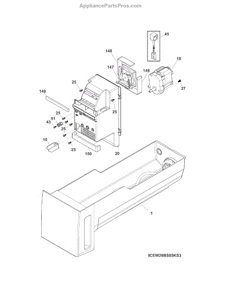 Restore reliable dispensing with this replacement ice container assembly. It stores the ice beneath the icemaker and feeds it to the dispenser, replacing cracked or worn bins that cause jams, noise, or poor ice delivery.