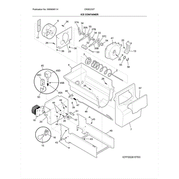 The Ice Container Assembly is an OEM replacement part for Frigidaire refrigerators. This component serves as the storage bin or receptacle for the ice produced by the icemaker, providing a convenient and accessible location for the ice.