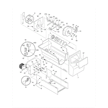 The Ice Bucket Housing is an OEM part for Frigidaire refrigerators. This component serves as the main enclosure for the ice bucket, supporting and protecting the ice maker's storage bin. It is designed to fit securely within the freezer compartment, helping to maintain the ice in a solid state by insulating it from varying freezer temperatures and ensuring that ice production is efficient and consistent.
