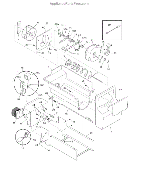 • Transfers rotation from the motor to move internal levers/gears in the ice assembly