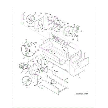 The Ice Bucket Housing is an OEM part for Frigidaire refrigerators. This component serves as the main enclosure for the ice bucket, supporting and protecting the ice maker's storage bin. It is designed to fit securely within the freezer compartment, helping to maintain the ice in a solid state by insulating it from varying freezer temperatures and ensuring that ice production is efficient and consistent.