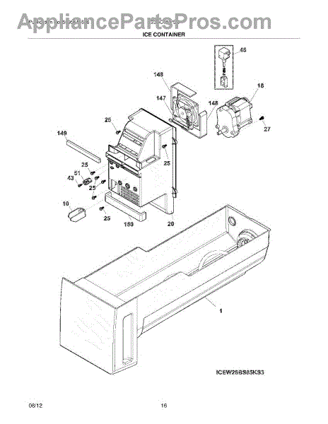 Ice dispenser jammed or only dispensing crushed ice? This ice container assembly stores ice and guides cubes to the dispenser. Easy slide-in install.