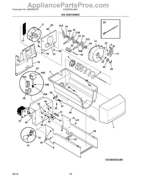 This ice container assembly holds and dispenses ice made by the freezer's icemaker, keeping cubes contained and ready for use. Replaces a cracked, warped, or missing ice bin to restore proper ice storage and delivery. What it does
