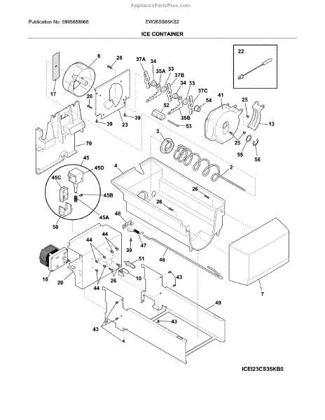 An ice auger rotates inside the freezer's ice bin to move cubes to the crusher and out the dispenser chute. Replacing a worn or broken auger restores consistent dispensing and helps eliminate jams and grinding from a slipping spiral.