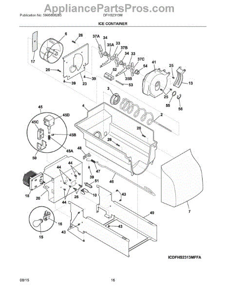 Note: For the complete ice container assembly with auger and moving parts, order part number 241860803.