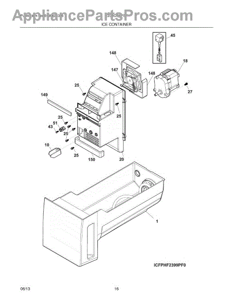 This ice container assembly collects and stores ice from the refrigerator icemaker so you have ready ice on demand. Durable molded plastic keeps ice contained and helps the dispenser feed cubes cleanly. What it does: