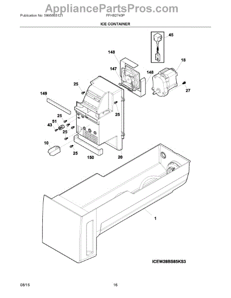 Parts for Frigidaire FFHB2740PS8A: 08 - Ice Container Parts