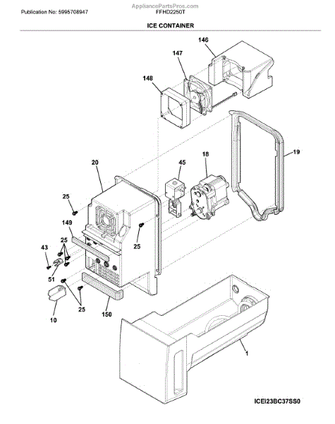 This OEM replacement part is an ice container for refrigerators. The ice container is the plastic bucket that holds the ice that is made by the icemaker. Over time, an ice container can become damaged due to excessive wear and tear. If the ice container is cracked or broken to the point where it can no longer hold ice, it will need to be replaced.To replace the ice container, start by unplugging the refrigerator. Once unplugged, proceed to open the freezer door. Locate the two mounting screws that attach the ice container to the icemaker. Once found, proceed to unthread the screws to remove the old container. After pulling the old container out, slide the new one in place and fasten the mounting screws that secure it to the icemaker. This genuine replacement part is sourced directly from the manufacturer and is sold individually. It is compatible with Frigidaire, Electrolux, Gibson, Kelvinator, and Westinghouse brand refrigerators.