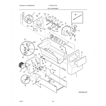 The Ice Bucket Housing is an OEM part for Frigidaire refrigerators. This component serves as the main enclosure for the ice bucket, supporting and protecting the ice maker's storage bin. It is designed to fit securely within the freezer compartment