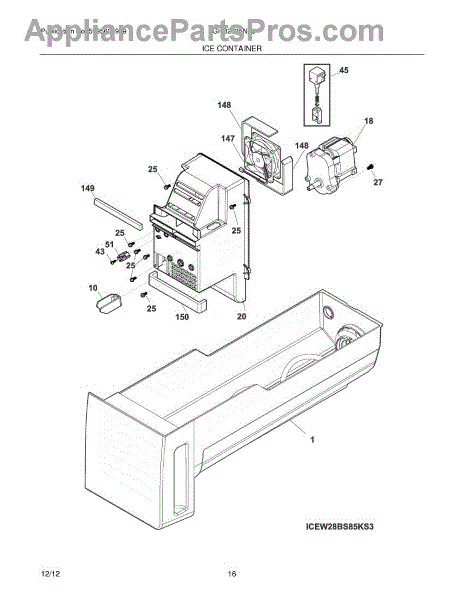 Parts for Frigidaire FGHB2735NF0: 15 - Ice Container Parts