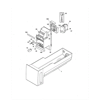 The Solenoid and Yoke Assembly is an OEM part for Frigidaire refrigerators. It is used in the ice dispensing system to control the movement of the ice chute, allowing ice to be dispensed from the refrigerator door.