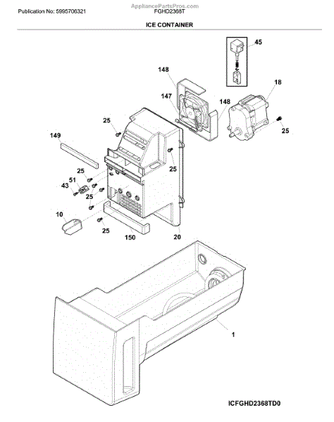 This OEM replacement part is an ice container for refrigerators. The ice container is the plastic bucket that holds the ice that is made by the icemaker. Over time, an ice container can become damaged due to excessive wear and tear. If the ice container is cracked or broken to the point where it can no longer hold ice, it will need to be replaced.To replace the ice container, start by unplugging the refrigerator. Once unplugged, proceed to open the freezer door. Locate the two mounting screws that attach the ice container to the icemaker. Once found, proceed to unthread the screws to remove the old container. After pulling the old container out, slide the new one in place and fasten the mounting screws that secure it to the icemaker. This genuine replacement part is sourced directly from the manufacturer and is sold individually. It is compatible with Frigidaire, Electrolux, Gibson, Kelvinator, and Westinghouse brand refrigerators.