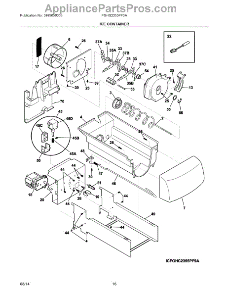 The Ice Container Assembly is an OEM part for Frigidaire refrigerators. This part collects and holds the ice produced by the icemaker.
