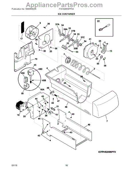 The Ice Container Assembly is an OEM part for Frigidaire refrigerators. This part collects and holds the ice produced by the icemaker.