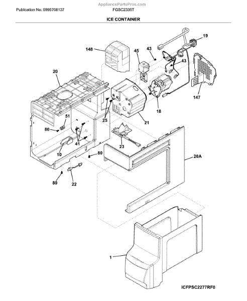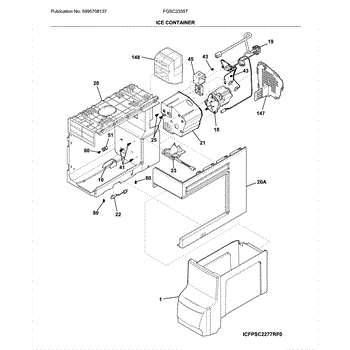 The Ice Container Assembly is an OEM part for Frigidaire refrigerators. This part stores ice produced by the icemaker, providing a convenient and accessible location for ice storage within the freezer.
