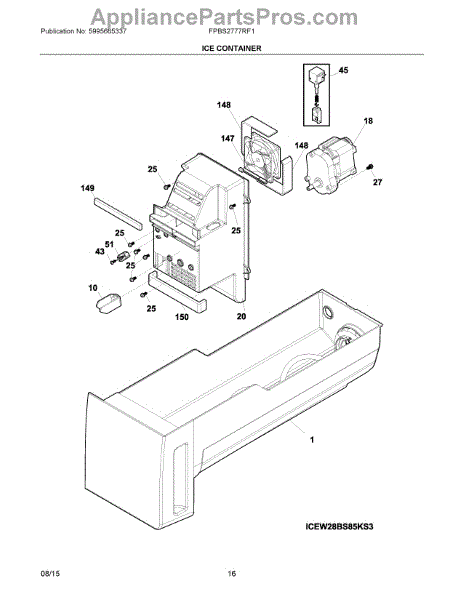 The Dispenser Auger Motor is an OEM part for Frigidaire refrigerators. It powers the auger that dispenses ice from the ice maker through the dispenser chute, ensuring smooth and efficient delivery of ice to the user.