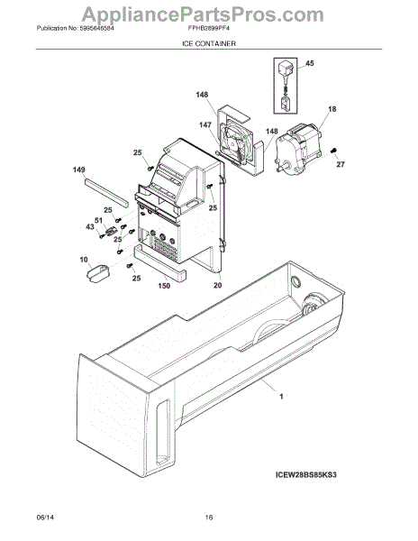 Parts for Frigidaire FPHB2899PF4: 15 - Ice Container Parts