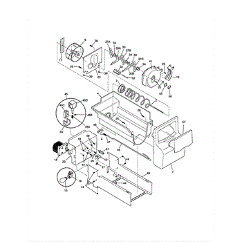 The Ice Bucket Housing is an OEM part for Frigidaire refrigerators. This component serves as the main enclosure for the ice bucket, supporting and protecting the ice maker's storage bin. It is designed to fit securely within the freezer compartment, helping to maintain the ice in a solid state by insulating it from varying freezer temperatures and ensuring that ice production is efficient and consistent.