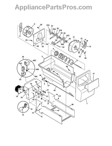 An ice auger rotates inside the freezer's ice bin to move cubes to the crusher and out the dispenser chute. Replacing a worn or broken auger restores consistent dispensing and helps eliminate jams and grinding from a slipping spiral.