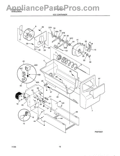The Ice Container Assembly is an OEM replacement part for Frigidaire refrigerators. This component serves as the storage bin or receptacle for the ice produced by the icemaker, providing a convenient and accessible location for the ice.