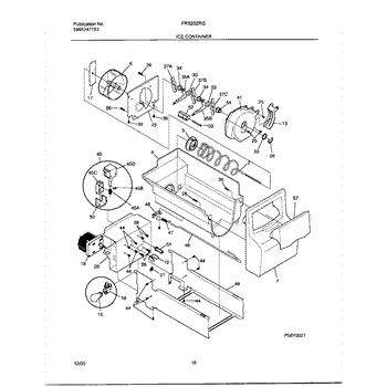The Ice Container Assembly is an OEM replacement part for Frigidaire refrigerators. This component serves as the storage bin or receptacle for the ice produced by the icemaker, providing a convenient and accessible location for the ice.