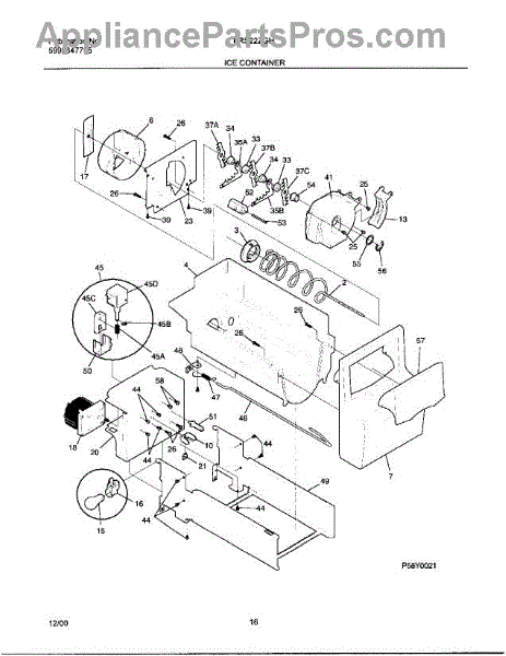 The Ice Container Assembly is an OEM replacement part for Frigidaire refrigerators. This component serves as the storage bin or receptacle for the ice produced by the icemaker, providing a convenient and accessible location for the ice.