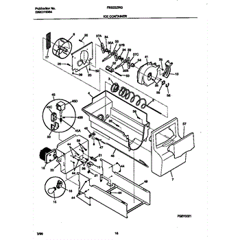 The Ice Bucket Housing is an OEM part for Frigidaire refrigerators. This component serves as the main enclosure for the ice bucket, supporting and protecting the ice maker's storage bin. It is designed to fit securely within the freezer compartment, helping to maintain the ice in a solid state by insulating it from varying freezer temperatures and ensuring that ice production is efficient and consistent.