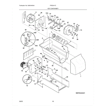 The Ice Container Assembly is an OEM replacement part for Frigidaire refrigerators that stores ice made by the ice maker. It includes the container, auger for ice dispensing, and other mechanisms for storage and dispensing.