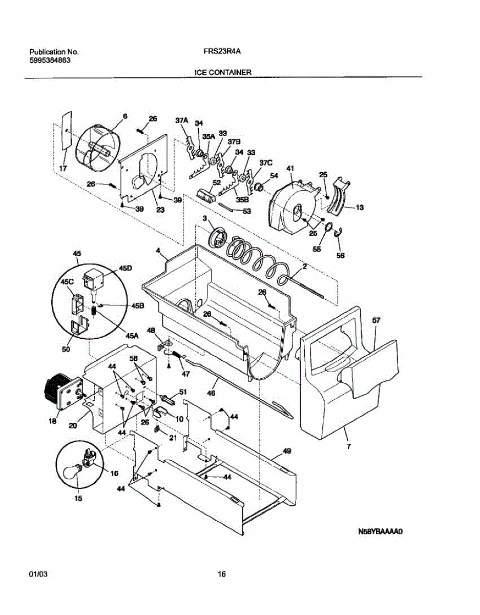 Parts for Frigidaire FRS23R4AW9: 17 - Ice Container Parts