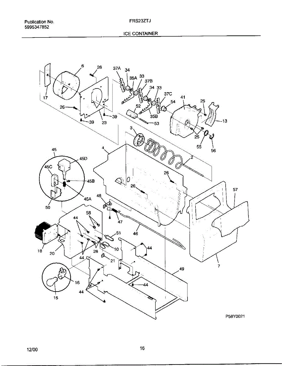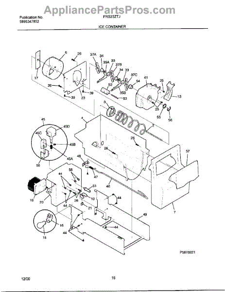 Parts for Frigidaire FRS23ZTJQ2: 16 - Ice Container Parts