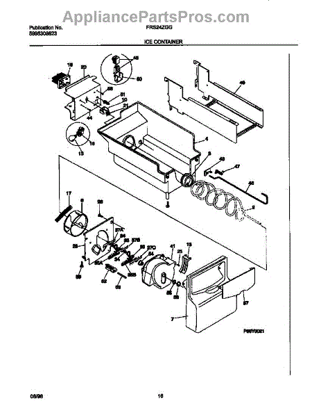 The Ice Container Assembly is an OEM replacement part for Frigidaire refrigerators. This component serves as the storage bin or receptacle for the ice produced by the icemaker, providing a convenient and accessible location for the ice.