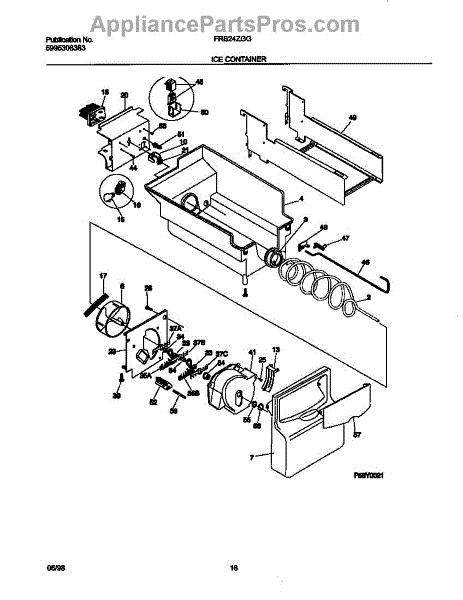 The Ice Container Assembly is an OEM replacement part for Frigidaire refrigerators. This component serves as the storage bin or receptacle for the ice produced by the icemaker, providing a convenient and accessible location for the ice.