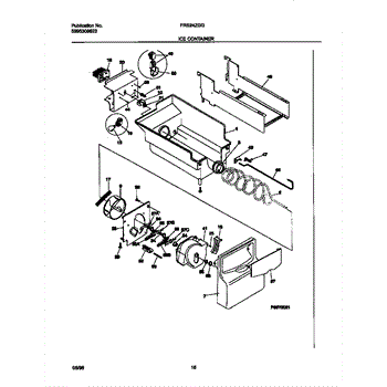 The Ice Container Assembly is an OEM replacement part for Frigidaire refrigerators. This component serves as the storage bin or receptacle for the ice produced by the icemaker, providing a convenient and accessible location for the ice.