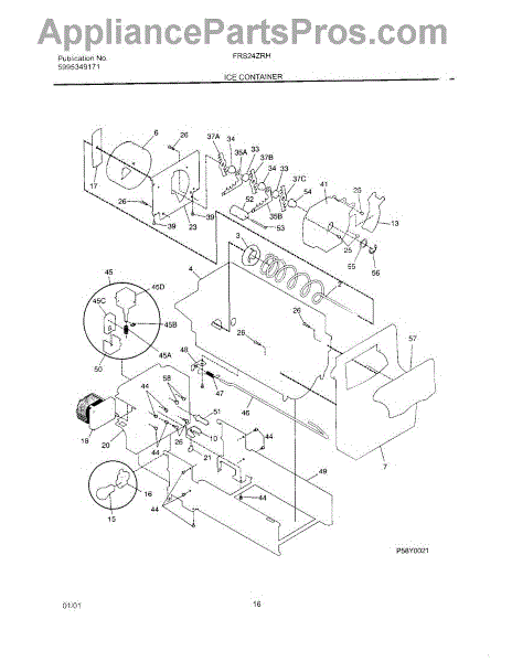 Parts for Frigidaire FRS24ZRHB5: 17 - Ice Container Parts