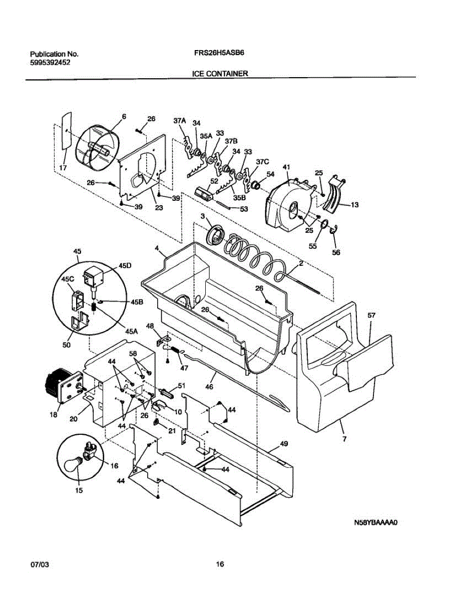 Parts for Frigidaire FRS26H5ASB6: 17 - Ice Container Parts