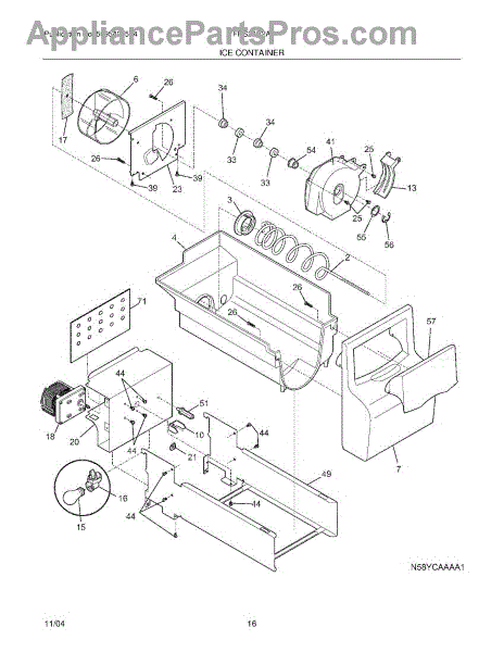 Parts for Frigidaire FRS26R2AQD: 17 - Ice Container Parts