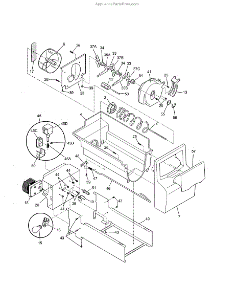 An ice auger rotates inside the freezer's ice bin to move cubes to the crusher and out the dispenser chute. Replacing a worn or broken auger restores consistent dispensing and helps eliminate jams and grinding from a slipping spiral.