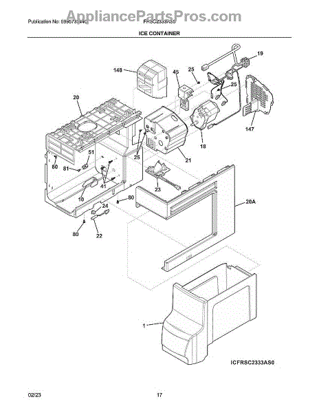 This ice container assembly catches and stores ice produced by the refrigerator's ice maker so you have a ready supply on hand. Durable molded design helps keep ice contained and accessible for dispensing or scooping. What it does: