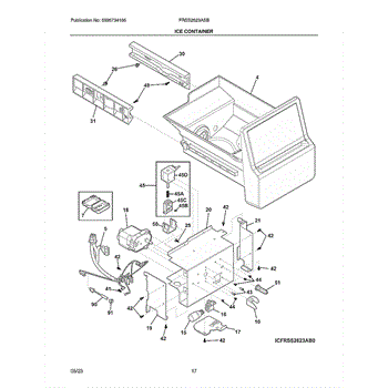 The Ice Container Assembly is an OEM part for Frigidaire refrigerators. It holds and dispenses ice from the freezer's ice maker. The ice container assembly works with the ice dispenser and auger motor to provide a convenient and accessible source of ice.