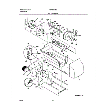 The Ice Container Assembly is an OEM replacement part for Frigidaire refrigerators that stores ice made by the ice maker. It includes the container, auger for ice dispensing, and other mechanisms for storage and dispensing.