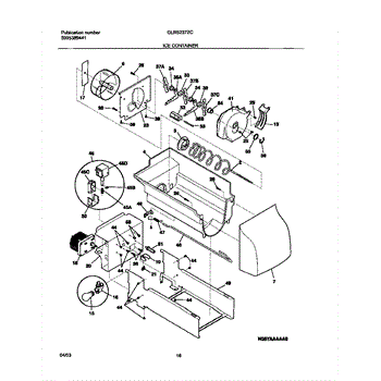 The Ice Container Assembly is an OEM replacement part for Frigidaire refrigerators that stores ice made by the ice maker. It includes the container, auger for ice dispensing, and other mechanisms for storage and dispensing.