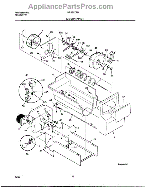 Note: For the complete ice container assembly with auger and moving parts, order part number 241860803.