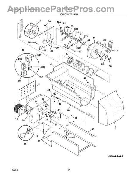The Ice Container Assembly is an OEM replacement part for Frigidaire refrigerators that stores ice made by the ice maker. It includes the container, auger for ice dispensing, and other mechanisms for storage and dispensing.