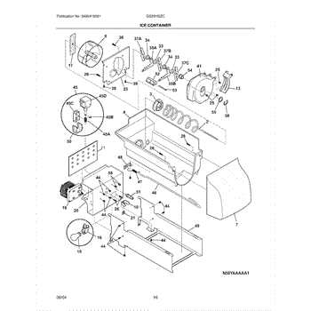 The Ice Container Assembly is an OEM replacement part for Frigidaire refrigerators that stores ice made by the ice maker. It includes the container, auger for ice dispensing, and other mechanisms for storage and dispensing.
