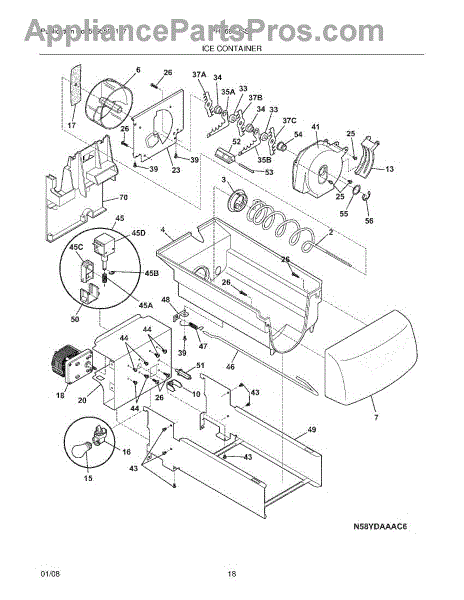 This is an ice bin that is used on refrigerator and freezer units. The purpose of this part is to store the ice that has already been made so that it is ready for dispensing. The auger is included with this part, which is the component that drives the ice out of the freezer for dispensing. Over time, the white plastic material that the bin is made of may begin to crack or break due to exposure to extreme temperatures over time. If this is the case, it will need to be replaced. If the auger no longer functions, it could have become damaged and this part will also replace the auger itself. Wear work gloves when replacing this part.This ice bin is compatible with refrigerator and freezer units that have been manufactured by Kenmore Elite, Kenmore Pro, Kenmore, and Frigidaire. It is sold individually. This part is sourced directly from the manufacturer.
