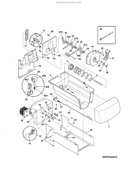 Parts for Kenmore 253.44359403 (25344359403, 253 44359403): Ice Container Parts