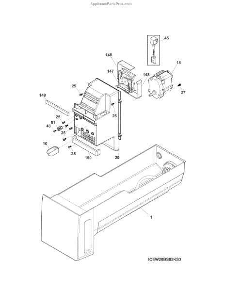 Parts for Kenmore 253.70343419 (25370343419, 253 70343419): Ice Container Parts